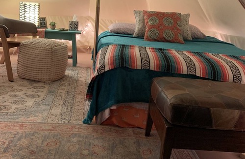 Glampsite Resort Near Joshua Tree with 4 Canvas Yurt Tents and Pool! is located in Desert Hot Springs. Glampsite Resort Near Joshua Tree with 4 Canvas Yurt Tents and Pool! provides accommodation, featuring Pool, Bedding/Linens, Child Friendly, among other amenities. This Resort features Pool, Bedding/Linens, Child Friendly, to make your stay a comfortable one.