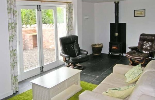 Amenities: LPG central heating with woodburner in sitting room. Gas oven & hob, microwave, fridge/freezer, washing machine, dishwasher, TV with Freeview, DVD, WiFi. Fuel, power & starter pack for woodburner inc. in rent. Bed linen & towels inc. in rent. Cot, highchair & stairgate. Off road parking for 2 cars. Private enclosed rear patio with furniture & BBQ. Shared use of heated outdoor swimming pool by prior arrangement with the owner (open 1st July - 30th Sept). Note: The pool closes at 6:30pm for chemical top-up & hoover clean & is heated in July & August only. Please be aware that the pool is an open air swimming pool in the middle of the countryside, you may find local wildlife visit (a net is provided). Trout fishing on River Clwyd available within owner's ground (end March to end Sept - licence required). Shared access to private lake with viewing bench. Two small well-behaved dogs welcome. Sorry, no smoking. Shop & pub 1.5 miles. Note: Unfenced pond & lake - children ans pets must be supervised. Note: The double beds in the family room are accessed from one side only. Note: Dogs must be supervised at all times as the owners have dogs of their own and must be kept on a lead at all times when outside and not be allowed to roam freely. Note. This property charges a £30 energy supplement due to increased costs.