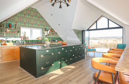 Amenities: Oil central heating with ground floor underfloor heating, dual aspect woodburning fire and woodburning stove 2 x single electric ovens, electric hob, 2 x warming drawers, microwave, 2 x fridge/freezer, 2 x dishwasher, washing machine, Quooker hot water tap, bean to cup coffee machine, 8 x Smart TVs and Wifi. Fuel and power inc. in rent. Bed linen and towels inc. in rent. Highchair, travel cot and stairgate available. Ample off-road parking. EV Car charging point. Two extensive first-floor balcony areas with lounge sofas and cushions, rear garden with lawn garden and patio area with table and chairs, as well as access to a sauna and hot tub, and outdoor games. Paddleboards, a double kayak and an assortment of wetsuits and lifejackets are provided too. Two dogs welcome. Sorry, no smoking allowed. Shop 3.2 miles, pub 0.4 miles. Beach 0.1 miles. Note: There is an additional charge for pets, £45 per pet, per week. Note: There is an additional charge for the use of the hot tub, £250 per week.