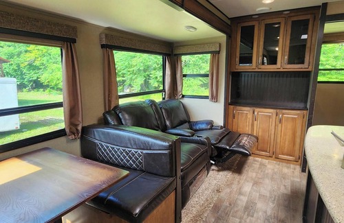 Glarus - Riverside 36' RV, trout stream firepit is located in Helvetia. Glarus - Riverside 36' RV, trout stream firepit provides accommodation, featuring Balcony/Terrace, Bedding/Linens, Fireplace/Heating, among other amenities. This RV Rental features Balcony/Terrace, Bedding/Linens, Fireplace/Heating, to make your stay a comfortable one.