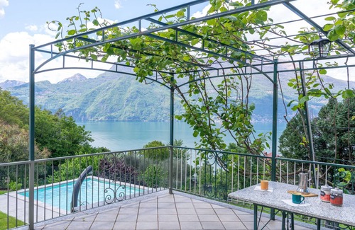 Perledo 3 km from Varenna: Residence. 2 houses in the residence. 3 apartments in the residence. In the hamlet Gittana 3.5 km from the centre of Varenna, 2.5 km from the centre of Perledo, 25 km from the centre of Lecco, 1.3 km from the lake. For shared use: garden 100 m2 with lawn, swimming pool angular (4 x 7 m, depth 100 cm, seasonal availability: 30.Apr. - 31.Oct.) with salt-electrolysis pool-cleaning system. Terrace, garden furniture, barbecue. Pool maintenance by the owner/gardener. In the house: storage room for bicycles, washing machine, tumble dryer (for shared use). 2.5 km long narrow motor access (mountain road). 20 m footpath (15 steps) to the house. Public parking 20 m. Shop 2.5 km, supermarket 3.5 km, bus stop "Perledo" 2.8 km, railway station "Varenna" 3.5 km, pebble beach "Lido di Gittana" 1.3 km (small), grass beach "Bellano" 3.5 km. Golf course (18 hole) 12 km, walking paths from the house 100 m. Hiking paths: Sentiero del Viandante.