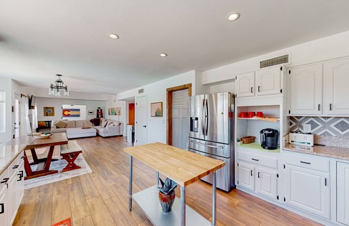 Spend your afternoons swimming in the pool out back, taking naps in the hammock, and gathering for sunset cocktails in the shade of the patio. Back inside, you can sneak off to the home office to log onto the high-speed WiFi, set up a board game at the table, or simply unwind in central air conditioning. The five bedrooms are spacious and comfortable, including a primary suite with a deep soaking tub and separate shower.