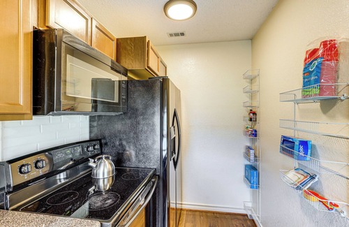 This 2-bedroom, 2-bath vacation rental, with sprawling views and a well-appointed interior, is a great home base for groups seeking pleasant accommodations in Salado. In your downtime, play a round of eighteen at Mill Creek Country Club or spend an afternoon in Austin and visit must-see spots like the Texas State Capitol. At day's end, return to the apartment to relax in the yard while the kids play on the swings.