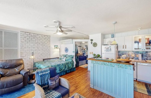Directly on the prestigious Waikoloa Village Golf Course, Golfer’s Lava Cove is a chic boutique which is a charming and romantic studio condo offering stunning golf course views and a peek of the ocean. This cozy retreat is perfect for a couple looking for a relaxing getaway or a solo traveler seeking inspiration and tranquility.