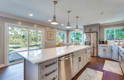 Check in a rookie and depart a pro at this elegant 2-bedroom, 2-bath vacation rental, hosting fairways in the backyard and a personal putting green in the front! Play 18 holes at your leisure, or take advantage of the ideal proximity to local shops, restaurants, and beaches. At day's end, re-gather with your group and toast to days well spent on the deck, complete with front-row views of the 5th hole.