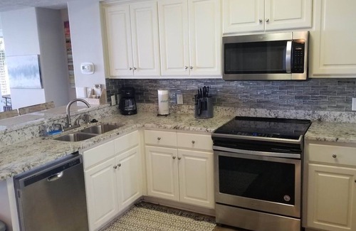 Exquisitely renovated and beautifully appointed unit sits directly above the sugar white sands with awe-inspiring vistas. This two-bedroom, 8th-floor, Gulf Front condo has platinum-grade furnishings throughout -- from the beautiful wood floors, to the granite countertops, the eye-catching kitchen back splash, HDTVs, new high-end furniture and comfortable bedding, and New Balcony furniture.