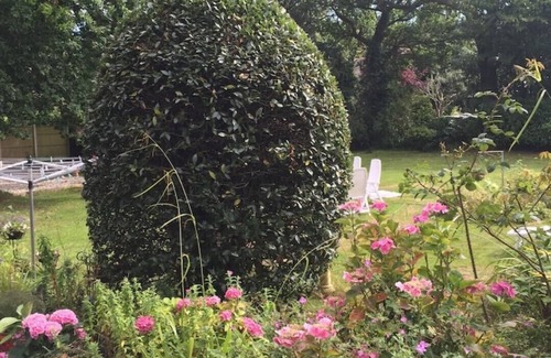 Its a charming, restful & unique space. Has beautiful views of a south-facing garden from living area. Own entrance & staircase from side of building. Free use of sunloungers. Also plenty of on-street free parking at weekends and after 5pm weekdays. Food deliveries no problem. Fabulous outdoor dining feature with large gazebo to enjoy your own private space, patio heaters when weather is cooler. Please use recycling wheelie bins provided. Close to shops, just a few minutes to Lidl, Waitrose & banks etc.