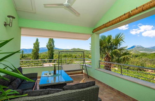 This tastefully furnished holiday apartment is situated in a rural location in central Dalmatia. It is located on the first floor and has a spacious terrace with a marvellous view of the countryside. Behind the house you can grill delicious specialities and relax on the terrace. Experience rafting adventures in the Cetina Gorge just 500 metres away. Make your own judgement that this is one of the most beautiful spots in Croatia. In about 30 minutes by car you can reach the sandy beaches in Omi. The town of Kreevo is well connected to Makarska and Omi, where you will find many sights and interesting events.