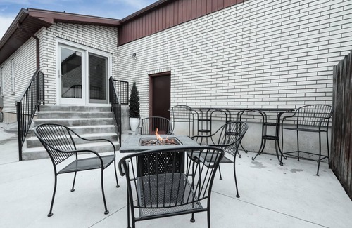 There is a large two-car garage to shelter your ride from hot summers or snowy winters. The back patio features a firepit for those late-night s'more cravings.