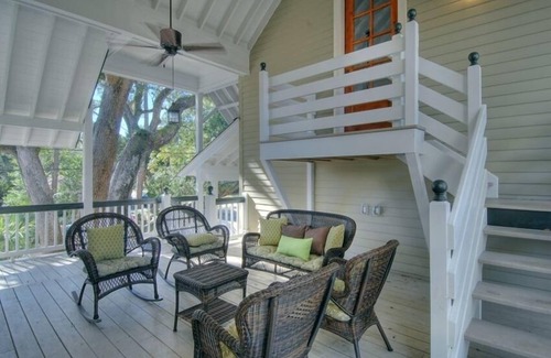 The bunk house is separate from the main house but attached via covered porch and features three bedrooms and three full baths. The upstairs bedroom/5 bed bunkroom doubles as second family room with a 42 inch flat screen tv and a large oversized leather couch. The bunkroom provides a great sanctuary for the kids of all ages. Two lower bedrooms feature a queen bed and two singles, respectively.