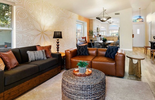 Exquisitely designed, stylish, and fun, this family-friendly retreat offers a place in the sun for guests of all ages. Head out back into the oasis back yard and soothe your mind and body in the sparkling, optionally-heated pool. This truly magical space is adorned with strings of lights, lemon trees, and plenty of comfortable outdoor seating areas including an elevated, poolside sun deck. When you want to get out and explore, this property is close to several golf courses, parks, restaurants, and shops.