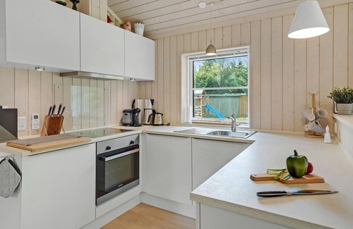 Beautiful vacation home in Gedesby on Sydfalster. The house was built in 2019 and is located in a cul-de-sac. Here you can enjoy your vacation in peace and quiet. Open kitchen in connection with the living room, from where you have access to a covered terrace. There is a nicely tiled bathroom with shower. The kitchen is modernly equipped. Gedesby beach is a child-friendly and good swimming beach - ideal for (sun) bathing, hiking and various beach activities. In the center there is a bakery where you can buy bread rolls in the morning. Marielyst offers restaurants and supermarkets as well as many stores. Take the family on a trip to the golf and fun park. In Nykøbing Falster you can shop and experience the medieval center, explore the beautiful countryside by bike or on foot.