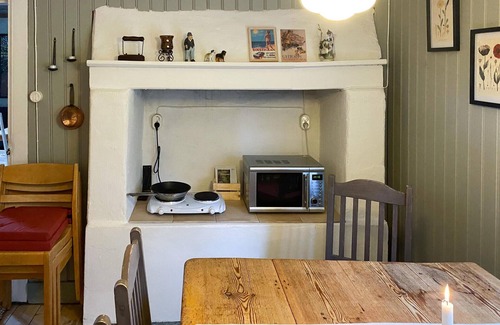 South of Jönköping, this vacation home welcomes you in a naturally beautiful location close to the forest. The cozy interior offers several nice details and makes an authentic impression. Spend relaxing hours in the sofa corner playing board games or reading your favorite book and warm up on cool evenings with a tea in front of the fireplace.