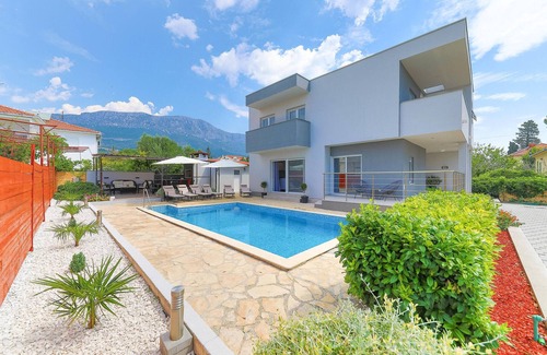 This great holiday home with pool is located just a 3-minute walk from the beautiful clear sea of Katelanski Bay, in Katel Kambelovac near the town of Trogir. Fully equipped for a comfortable family holiday with friends, the holiday home has, among other things, four bedrooms and a large terrace near the pool. Here you can enjoy many summer events and restaurants offering daily fresh Mediterranean delicacies and premium wine, where you can familiarise yourself with the local cuisine, and beautiful long evening walks along the coast. The moon and stars are rarely brighter and perfect for pleasant night swims.