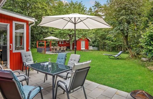 On a quiet nature plot lies this cozy cottage in Swedish red, from here you can walk to the beach. Make yourself comfortable in the bright, homely furnished rooms. There's plenty of space here for communal activities, enjoy a beautiful view of the outdoors at mealtimes. After a long walk on the beach you can sit down at the cozy crackling fireplace and chat for a long time.