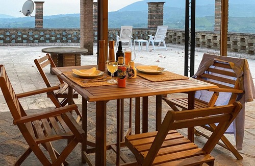 On the top of a hill, with a beautiful panoramic view of the plain, this vacation home outside the ancient medieval town of Olevano Romano welcomes you.