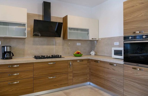 Santa Domenica is a modern and well-equipped holiday home in the picturesque village of Nedescina, just 6 km from Labin and 10 km from the popular resort of Rabac. The village offers essential amenities such as a grocery shop, café, post office and restaurant. The property, which is fenced for privacy, has an outdoor pool, a sunny terrace with sun loungers and parasols, a barbecue and a covered terrace with table football. There is a climbing frame with swings and a slide for the children and a car park for three vehicles. This welcoming ground floor house has a fully equipped kitchen, a dining area and a living room that opens onto the terrace overlooking the pool and garden. One of the two double bedrooms has its own terrace, a perfect place for morning coffee. The owner lives in the other half of the house, but the pool is exclusively for guests. Discover Labin's picturesque streets, cultural heritage and lively summer events. Savour the local cuisine, visit the town market or explore the stunning beaches and promenade of Rabac. Boat trips to the nearby islands are offered in summer. Please note that this property does not accept youth groups or stag and hen parties. A youth group at this property consists of people aged 26 or under.