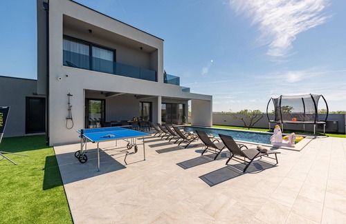 Just outside Zadar, this beautiful and spacious vacation home with heated swimming pool and whirlpool welcomes you.