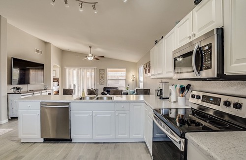This GORGEOUS newly remodeled & updated ENTIRE HOUSE is located in the desirable GATED 55 + RESORT COMMUNITY in CHANDLER, AZ. This is a fully furnished house where everything in it is brand new! Furniture, appliances, 75" TV, entertainment center, dishes, towels, bedding, grill, outdoor furniture etc. ALL FURNISHING ARE BRAND NEW! If you like resort living this is the place to be! Clean, modern 2 bed/2 bath home with golf course within walking distance. You will have access to all of the amenities of the community. GOLF, CLUBHOUSE, FITNESS CENTER, 2 OUTDOOR POOLS, TENNIS COURTS, PICKLE BALL COURTS, BASKETBALL COURT, HORSESHOES, BOCCE BALL, SHUFFLEBOARD AND SO MUCH MORE! The golf course is an 18 hole course with amazing beauty and just minutes away from the front door. There are walking paths throughout the community with spectacular view of the foothills. Chandler is a wonderful city that is close to so many adjoining areas...MESA, GILBERT, SCOTTSDALE & PHOENIX just to name a few. Chandler has so much to offer...great shops, restaurants, casinos, golf courses, hiking, flea markets, museums. All areas are within a short drive with so much to experience. Chandler has some fabulous shopping areas including the CHANDLER FASHION CENTER MALL which has hundreds of name brand stores and restaurants within the building. Other surrounding attractions include SPRING TRAINING BASEBALL, MESA FLEA MARKET, BARRETT JACKSON CAR AUCTION, OLD TOWN SCOTTSDALE, URBAN FISHING, TEMPE TOWN LAKE. The list goes on & on...so much to do in this beautiful area! Come enjoy our home to experience this resort style living! You'll love how relaxing & beautiful it is...just as vacation should be!