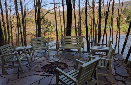 Without leaving our property you can enjoy the natural beauty of the area while relaxing on our spacious deck over looking the river. Or listen for geese, ducks and other birds on the flagstone patio with built in fire ring or while soaking the hot tub. Fly fish for trout in the well stocked tailwaters of the dam in our back yard. Watch for great blue heron, osprey or if you are lucky the bald eagles that fish here as well.