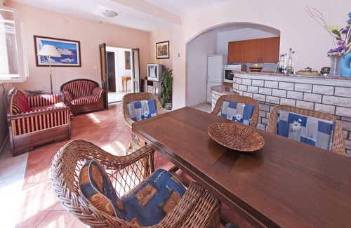 This gorgeous property is surrounded by orange, olive, pine trees and other Mediterranean greenery. From its terraces and balconies you can enjoy in a cozy atmosphere and a breathtaking view on the blue Adriatic Sea which is only 50 m away, the island of Daksa and Lapad peninsula. Just 20 meters below the house there is a private restaurant offering well prepared dishes for very reasonable prices. The Old City is only 5 minutes drive (6 km) via newly built bridge