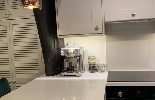 The kitchen is in the basement & is newly fitted in July 2022. It has a washing machine, tumble dryer, dishwasher, microwave etc along with all you need should you wish to stay at home to cook a meal. There is a Sage coffee machine for a freshly ground cuppa & an instant hot water tap for your hot drinks/cooking convenience.