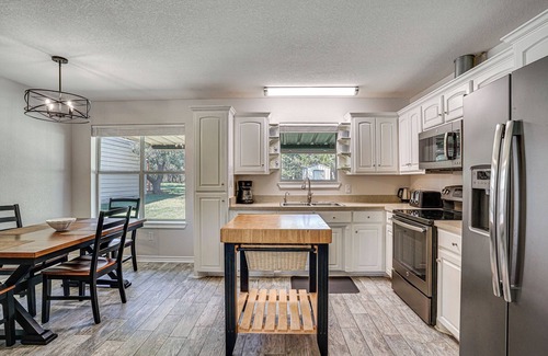 A peaceful retreat is what you'll get when you book this beautiful property in Granbury featuring a great game room! This vacation rental is an escape from the crowd but close enough to enjoy Historic Granbury Square. This 2-bedroom, 2-bath house sits around the corner from a neighborhood private lakeside park, where you’ll have unlimited access to a dock, pavilion, and grills. Pack your bags, hitch up the boat, and load all the gear needed for the day’s deep-water excursion and epic getaway.