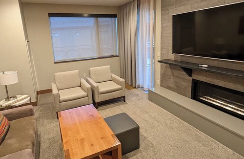 Unwind in Grand Peak * at this charming lodge. This cozy retreat features a comfortable bedroom and a lovely living room with a sofa bed for extra guests. Enjoy the convenience of WiFi, a washing machine, and AC during your stay. With access to a fitness room and other amenities, guests can relax and recharge in this enjoyable space. You're sure to make fantastic memories with a stay at our place.