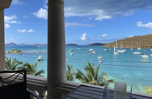 "Indigo Blue" is a beachfront luxury condo located at Grande Bay Resort. The unit boasts unobstructed oceanfront and bay views from the desirable second floor in the front row building. Two balconies allow you to hear the gentle waves of Cruz Bay 30 feet from the condo. Part of the charm of Indigo Blue is having morning coffee or afternoon drinks on the balcony while watching the sailboats in Cruz Bay. The unit may be rented as a 2BR, 1BR Suite or Studio Suite. Each option has a private entrance to accommodate families or couples. We also own Mojo Blue 2 BR lock off located next to Indigo Blue in the front row building same level.