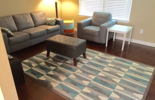 King bed in master with en suite bathroom. Queen bed and Twin daybed rooms off hallway equally accessible to 2nd bathroom. TV, internet, air conditioning provided. Driveway for 2-3 cars. Quiet neighborhood. House rules for this 2nd home include that guests must remove shoes at door please.