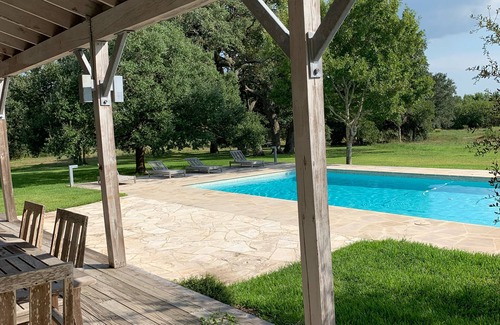 Yes, this Round Top house has a swimming pool. Check the Facility Overview section for details about the pool and other available facilities.
