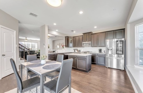 Discover the perfect blend of comfort and entertainment in our stunning 4BR/3.5BA home in Irving, ideal for families and groups. Boasting a king-sized bed, a fun-filled game room with a Foosball table, and hand-scraped hardwood floors, this corner lot gem is designed for relaxation and enjoyment. The chef's kitchen, equipped with quartz countertops and stainless steel appliances, is perfect for culinary adventures. Freshly painted with modern fixtures, this home is minutes away from Whole Foods, Target, DFW Airport, and the Toyota Music Factory. Experience a memorable stay with us!