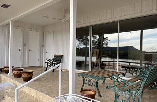 Lake house with a private sandy beach on "constant level" Lake LBJ. House has unobstructed views of lake, natural hill country and Packsaddle Mountain. Best beach in Central Texas! Boat accessible!