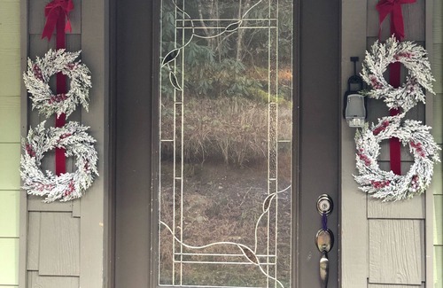 “Rocky Meadows" is our home my husband and I now use for short term vacation rental. "Rocky Meadows" is close to 221 but has a feeling of seclusion. Sits on 3 acres, no other houses visible. There are two bedrooms, a queen-size bed in one and a bunk that has a full-size bottom bed with a twin in the upper. The great room was designed with family time in mind. The covered back deck has a patio table chairs and gas grill for outdoor entertaining. We have a full basement that is pretty much empty except for the washer and dryer. Designed and built by the owners this simple cabin utilizes many re-purposed materials. The floors are oak drawer fronts that were free and obtained from a cabinet shop that closed. The walls and ceilings are finished yellow pine, the window and door casings have Sweet Gum boards. All of these boards were cut off the property then dried and milled.