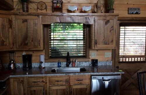 Beautifully decorated, cozy and comfortable! This cabin has 2 king bedrooms and 2 baths. Fully equipped kitchen with granite counters throughout cabin, stainless steel appliances, fireplace, hot tub, 3 flat screen TVs with ESPN, and free WiFi!! Washer and Dryer, coffee maker, blender, ice maker, all cooking utensils provided.