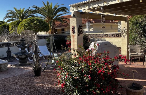 Unique comfortable home with large Greco-Roman Grotto in Sunland Village East. It comes with fully equipped kitchen, 5-G Internet, 3 large TVs , Attached garage. Close to the house there is a 18 hole golf course , 3 pools, gyms, cafe and too many amenities to mention here in the resort.
