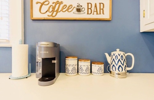 Keurig coffee maker, French Press, kettle, coffee pods & teas included