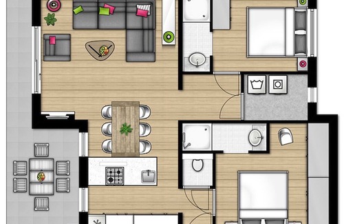 The ground floor bungalow 4C at Summio Vakantiepark Zeedijk is suitable for up to 4 persons. The detached bungalow and has two bedrooms, two bathrooms and has air conditioning.