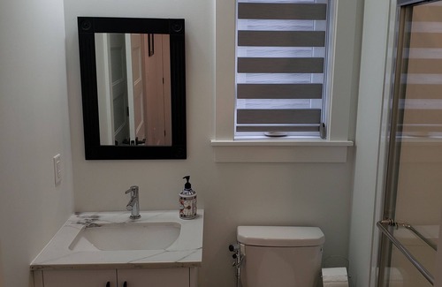 Entire main floor apartment in a 2021 build house, with separate entrance. , New MW/Toaster/Toaster Oven and induction cooktop , Full set of dishes, silverware, glasses, pots and pans, Full bath with toilet, shower and faucet. Walking distance from major shopping plaza (Mc Donald, Tim Hortons , Sobeys and more . street parking available