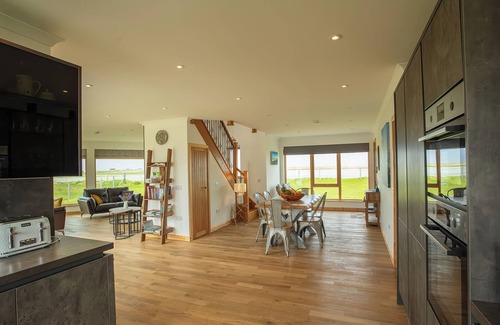 Amenities: Underfloor heating downstairs and radiators upstairs. Electric oven, electric hob, microwave, fridge/freezer, washing machine, tumble dryer, dishwasher, coffee maker, hairdryer. Smart TV, WiFi. Fuel and power inc. in rent. Bed linen and towels inc. in rent. Highchair and travel cot available on request. Ample off-road parking. Gardens to three sides, patio, gravelled area, furniture. Pet-friendly. Sorry, no smoking. Shop 2.2 miles, pub 3.5 miles. Note: Though electricity is included in the rent, electric for charging cars is not included in the rental. Note: Please bring own linen for travel cot. Travel advisory: