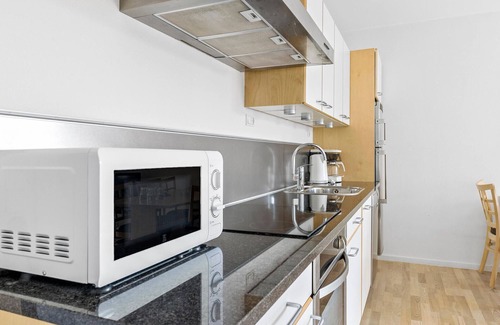 Spend a relaxing holiday in your stylish holiday apartment in picturesque Gudhjem. The bright and spacious apartment offers you an open-plan living area with comfortable seating for cosy hours. Whether you're having dinner together at the dining table or enjoying a relaxing film night on the sofa, here you can enjoy your time with family or friends to the full.