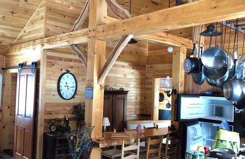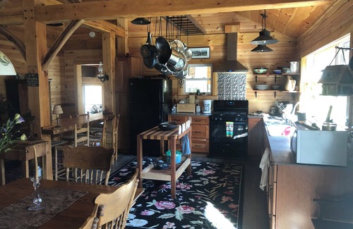 Located in Lincoln Vermont with a 1.5 mile driveway in off the main road. You are surrounded by National Forest and beautiful nature. Our guest house has 2 bedrooms one with King bed and one with queen. We also have a loft with 2 queen beds in it. We have all the amenities you could want while being totally off the grid. Available Memorial day - Columbus Day.