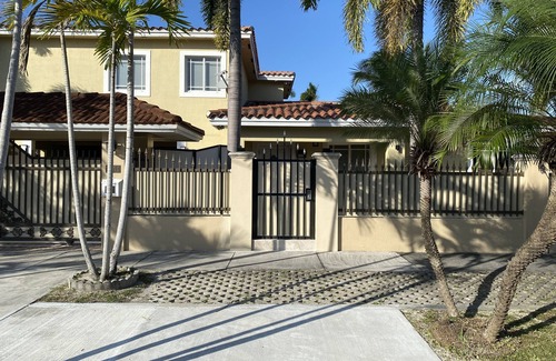 Our guest home is just 5 minutes from the Airport and central to all tourist attractions in Miami. It contains 2 bedrooms with a kitchen, we have 2 beds, a pull out couch, and an inflatable mattress as well as a heated pool strictly for guest. The guest home is entirely private and you will never see or hear the owners living on the property.