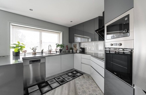 The kitchen is fully equipped with essential cookware and cutleries that you'll need to cook delicious meals, such as a stove, an oven, and a microwave. For added convenience, the property is equipped with a dishwasher to make post-meal cleanup a breeze and a washer, a drying rack, and ironing equipment to meet your laundry needs.