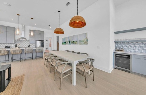This spacious 6000 sq. foot house features a private heated pool & hot tub, private balconies, two living rooms, large open kitchen with two dishwashers, and a foosball table.