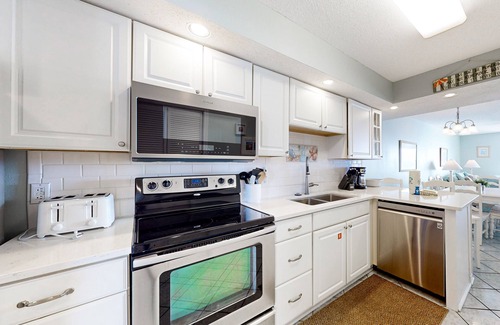 As you enter this eighth-floor condo, you'll be greeted by central air-conditioning, free WiFi, and cheerful decor that mimics the colors of the beach. There's a full kitchen with stainless steel appliances, space to dine at both the breakfast bar and the farm table, and a Gulf-front living room with a TV and direct access to the balcony overlooking the beach. Additional amenities include a TV in each of the bedrooms and a private washer/dryer.