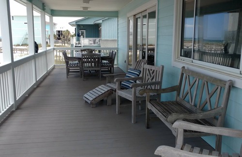 Walking Distance to shops & restaurants. Pensacola Beach Gulf front home is full of beautiful details and amenities. Breathtaking views from the beachfront balconies. One balcony spreads across the width of the home and is furnished with tables and chairs. In addition there is a loft balcony that also overlooks the Gulf of Mexico w/lounger for your enjoyment. Home supports entertaining large families/groups with ease. Four bedrooms/three baths setup to sleep 12.