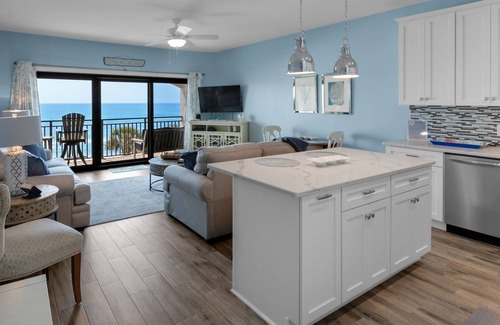 Enjoy your new home-away-from-home in this comfortable Gulf-front condo. This cozy 3rd floor unit boasts plenty of open living space with a modernized kitchen, providing ample space to prepare a family meal. The master bedroom includes a king bed, TV, and private bathroom with large shower. The kids will love the hallway bunks, and they'll have easy access to the modern and updated guest bathroom with tub/shower combination.