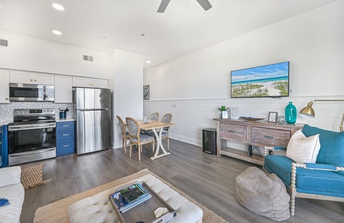 Escape the crowds and soak up the quiet side of 30A — where the sand is sugar-white, the sunsets are golden, and everything you need is just steps away. This fully renovated top-floor corner condo is just steps from the white sands of Santa Rosa Beach and walking distance to everything you need