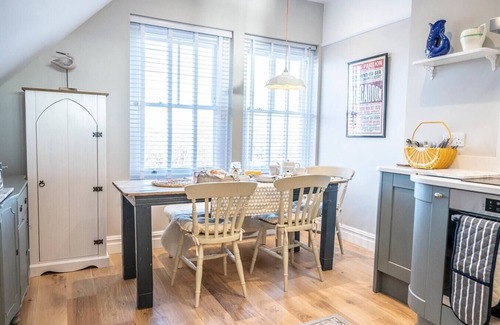 NEW FOR 2024 - Enjoy stunning sea views at this elegant light-filled holiday apartment blending character with style in vibrant Felixstowe. Interiors are beautifully refurbished throughout the spacious living room, well-equipped kitchen/dining, and both bedrooms (king and twin beds), with two bathrooms for extra privacy.